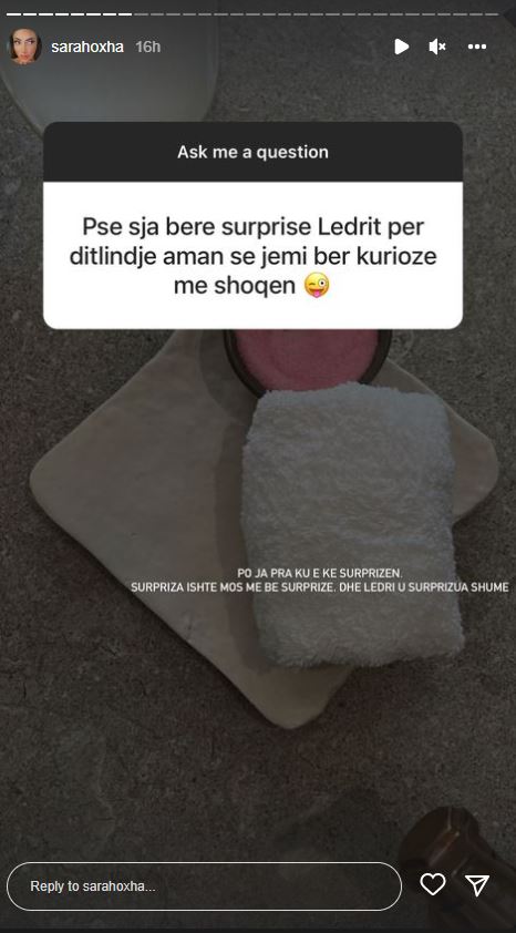 “Po ja pra ku e ke surprizën. Surpriza ishte mos me bë surprizë dhe Ledri u surprizua shumë,”-është shprehur Sara.