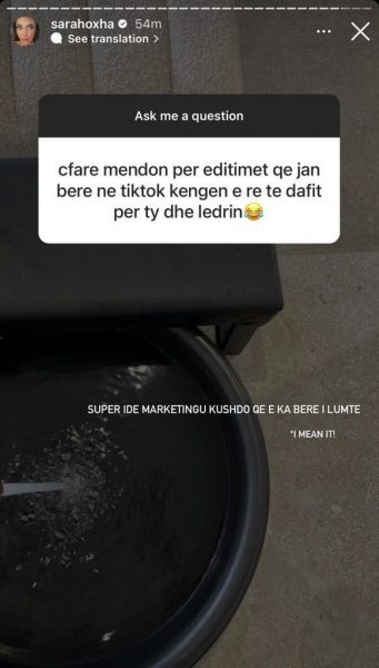 Së fundmi, një ndjekës këtë gjë ia ka bërë me dije dhe Sara Hoxhës, duke e pyetur se çfarë mendon ajo për editimet që janë bërë me një ‘demo’ të këngës së Dafinës dhe “Malli” për të dhe për Ledrin.