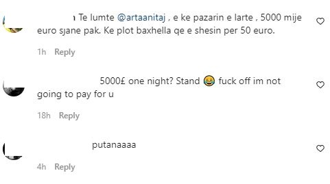 Ndjekësit e Arta Nitajt janë “vërsulur” me komente në rrjetin e saj social Instagram, duke e ironizuar pas nxjerrjes së mesazheve komprometuese.