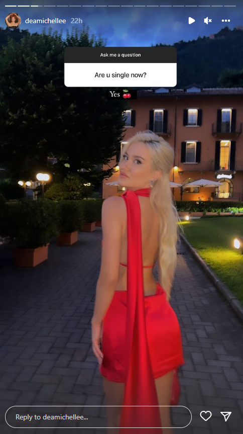 Këtë lajm e ka bërë të ditur vetë ajo përmes një bisede virtuale me ndjekësit e saj në Instagram. Mungesa e postimeve me njëri-tjetrin ka nxitur dyshime se çifti nuk është më bashkë, ndaj ndjekësi e ka pyetur nëse Dea është beqare.