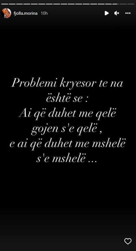 Këngëtarja dhe pse nuk e la pa iu kundërpërgjigjur në rrjetet sociale duket se nuk po i del ende inati me biznesmenin dhe ka reaguar mjaft e revoltuar nëpërmjet disa postimeve në InstaStory ku shprehet se ‘përsonat të cilët duhet të flasin nuk flasin dhe ata që duhet të mos flasin, flasin’.