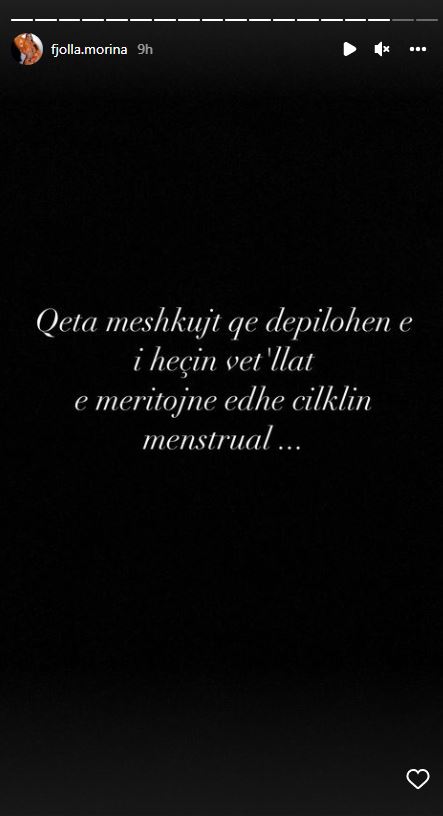“Problemi kryesor është se: Ai që duhet të flasi nuk flet, ndërsa ai që duhet ta mbylli gojën flet”– shkroi këngëtarja ku menjeherë ka ardhur dhe postimi tjetër teksa thumbon meshkujt që depilohen: