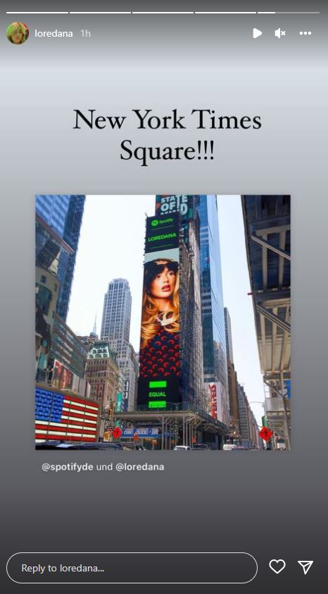 Imazhi i saj në sheshin e qytetit amerikan u publikua nga platforma muzikore Spotify, ndërsa u ripostua edhe nga vet Loredana në llogarinë e saj në Instagram.
