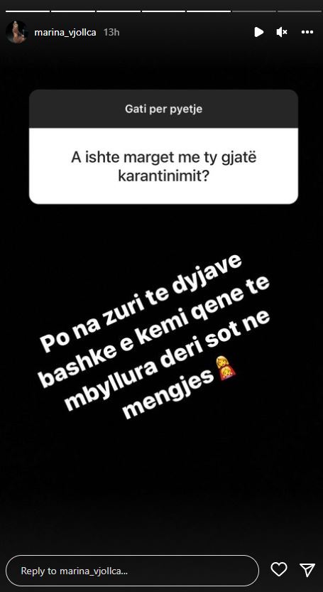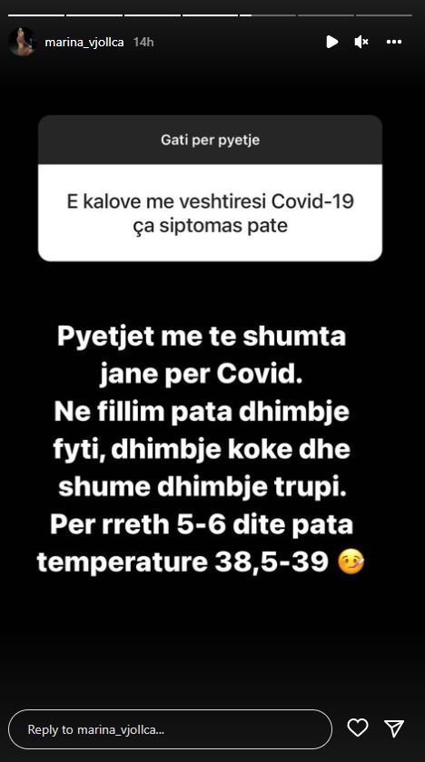 Ditën e djeshme Marina tregoi se më në fund kishte rezultuar negative, ndërsa tregonte edhe testin me foto. Por ndjekësit e saj ishin kureshtarë në lidhje me gjendjen e saj dhe simptomat që ka pasur.