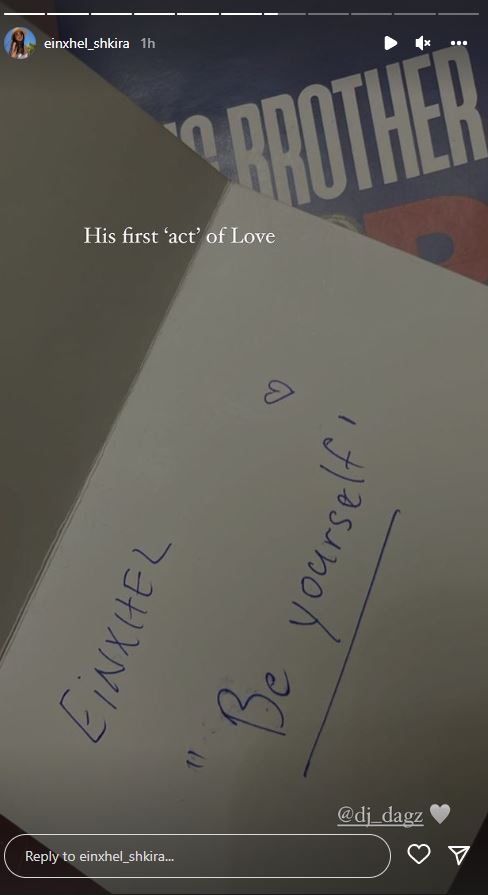 E teksa nuk ngurrojnë ta shfaqin publikisht dashurinë e madhe që kanë për njëri-tjetrin, Einxhel dhe Dagz sot festojnë 7 mujorin e tyre të lidhjes. Moderatorja tregoi për ndjekësit e saj në InstaStory një letër që ia ka shkruar Dj Dagz gjatë qëndrimit në shtëpinë e famshme.
