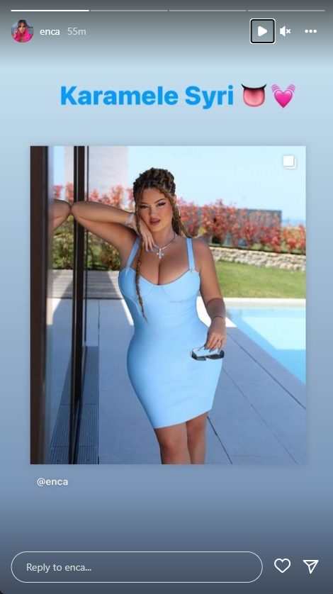 “Karamele syri” e ka konsideruar një foto ku duket me një fustan të kaltër pas trupit.