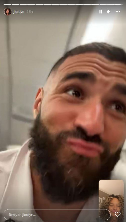 32-vjeçarja amerkane ka publikuar imazhet e para me sportistin në rrjetin social Instagram. Në një nga fotot modelja dhe Benzema shihen të përqafuar, ndërsa në imazhin duke folur në video-call.