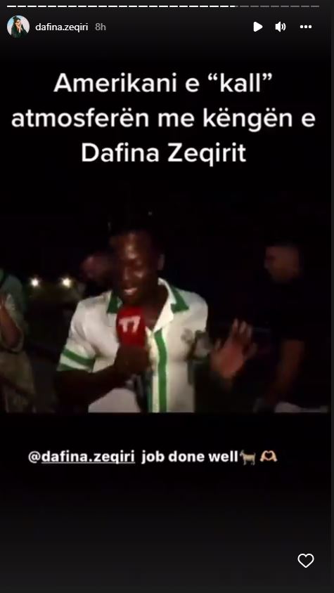 Bëhet fjalë për Dafina Zeqirin, jehona e këngëve të së cilës ka kaluar oqeanin. Së fundmi është bërë viral një moment kur një i huaj këndon “Pa ty”, bashkëpunimin e Dafina Zeqirit me Muma-n dhe Cricket, të lançuar një vit më parë.