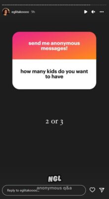 Ajo sqaroi edhe lajmet për shtatzëninë duke thënë: “Kemi arritur në një pikë që më vjen për të qeshur sinqerisht” dhe shtoi se në të ardhmen dëshiron të ketë dy ose tre fëmijë.