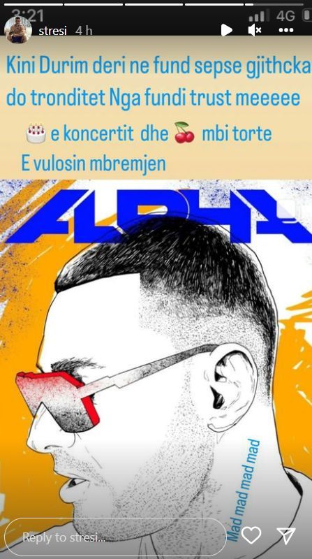 “Kini durim deri në fund sepse gjithcka do tronditet nga fundi me besoni. Torta e koncertit dhe qershia mbi tortë e vulosin mbrëmjen”, shkruan Stresi në postimin e tij.