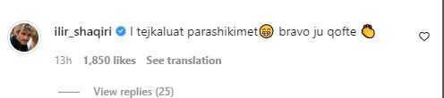 Pas konfirmimit të këtij lajmi nga Shkira, nuk ka munguar edhe një reagim i Ilir Shaqirit.