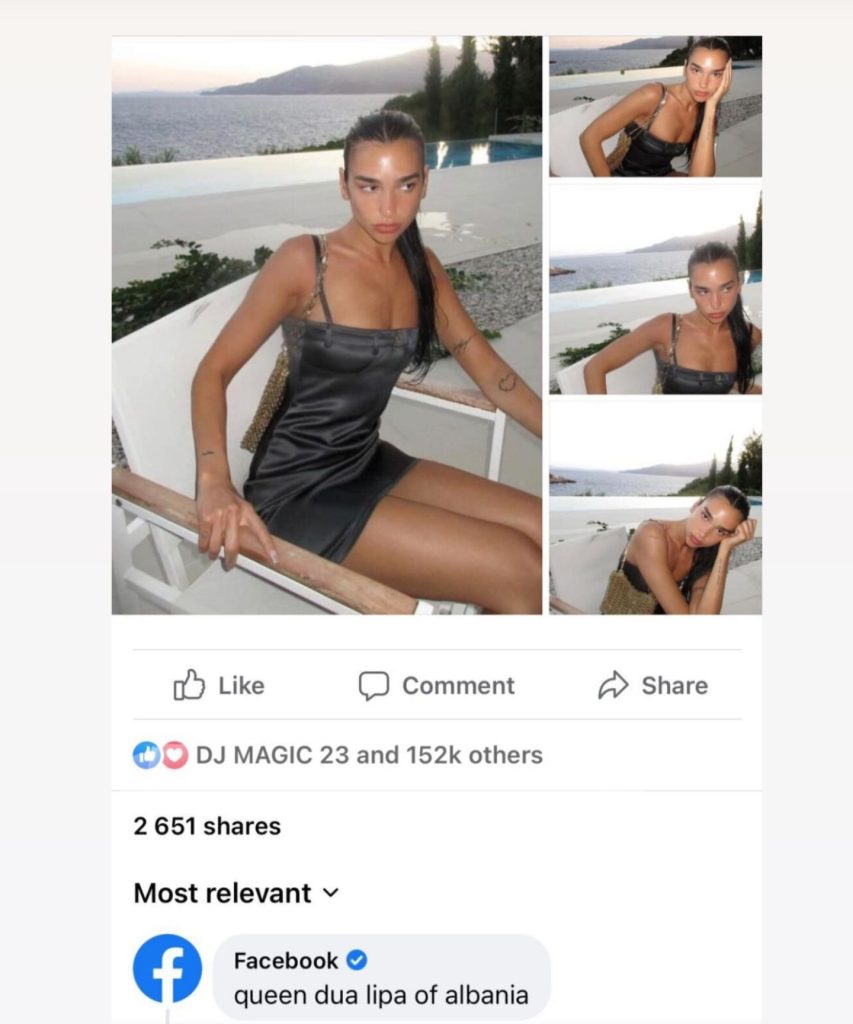 Llogaria zyrtare e “Facebook” nuk kursehet aspak kur bëhet fjalë për Dua Lipën. Ylli me famë botërore ka tërhequr sërish vëmendjen e gjigandit të rrjeteve sociale vetëm pak ditë pasi bëri bujë një koment në disa fotografi të saj.