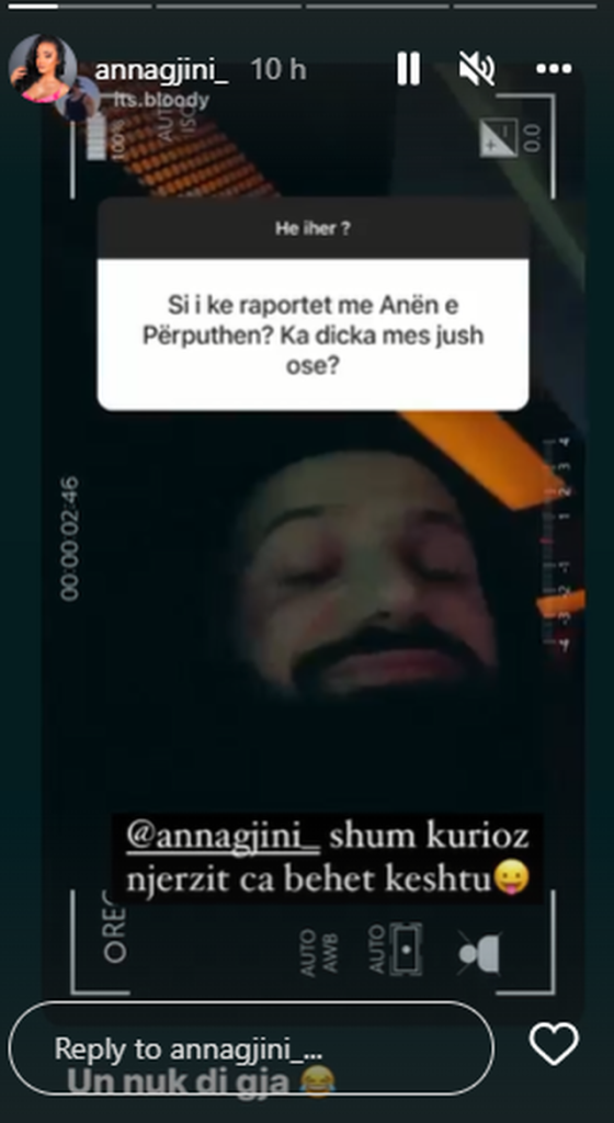 “Si i ke raportet me Anën? Ka diçka mes jush ose?”, i ka shkruar ndjekësi. Bledi i ka bërë tag Anës duke i thënë: Shumë kurioz njerëzit, ça bëhet kështu?