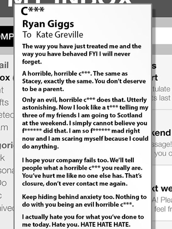 Gjatë gjyqit që u zhvillua, u zbardhën emaile-t tronditëse që Giggs i kishte dërguar ish-partneres së tij pasi ajo e bllokoi në rrjetet e tjera sociale.