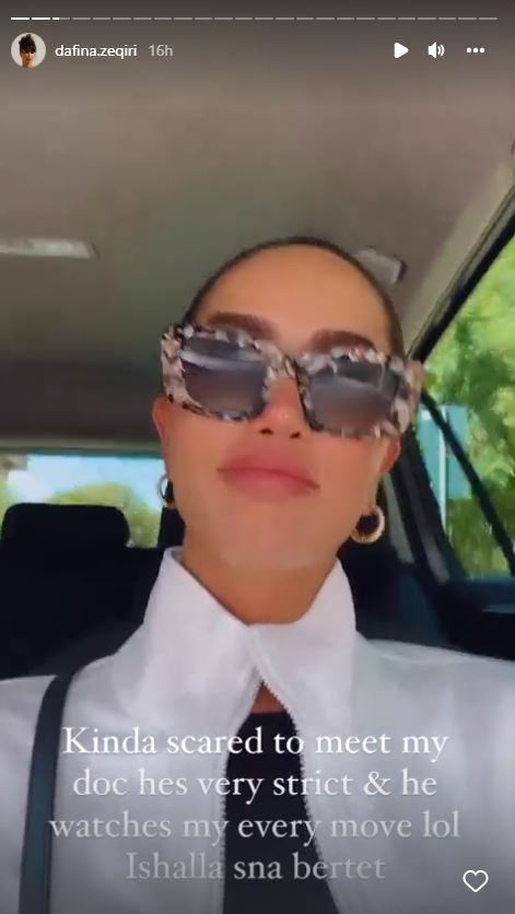 Në një tjetër story të publikuar Dafina tregon se është “e frikësuar” të takojë doktorin e saj duke shtuar se: “Ai është shumë strikt dhe më vëzhgon çdo lëvizje. Ishalla s’na bërtet.”