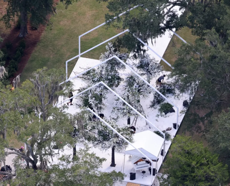 Dasma po realizohet në vilën e Benit në Riceboro. TMZ ka publikuar disa foto që tregojnë tavolina dhe karrige të vendosura përgjatë parketit mbi ujë me atë që duket si një tavolinë e veçantë për nusen dhe dhëndrin, pranë pianos.