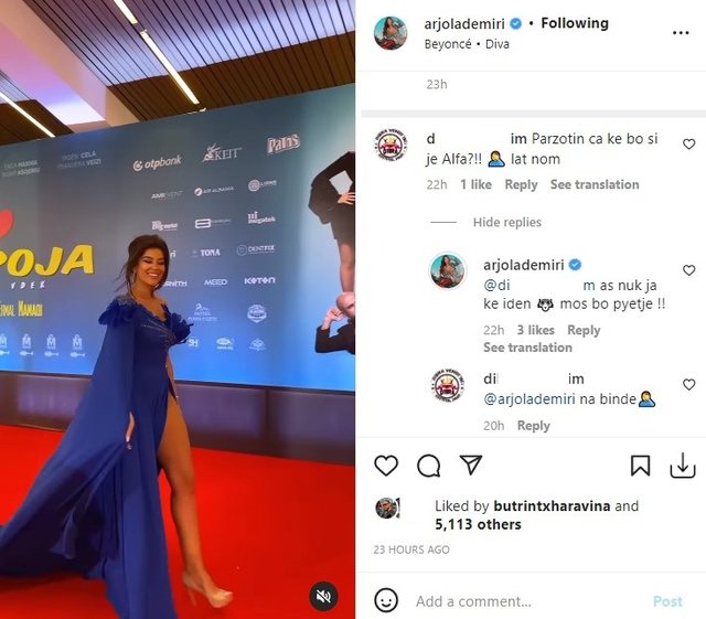 Nuk ka qenë vetëm një ndjekës që nuk i ka pëlqyer “nofka” e Arjolës. Një tjetër fans i saj ka komentuar poshtë postimit të aktores.
