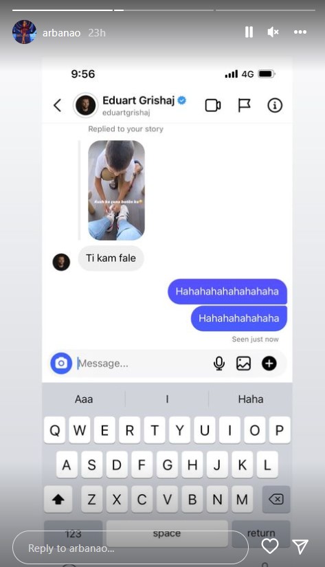 Duket se Edi nuk mendon kështu, dhe këtë fakt e ka treguar edhe në mesazhin e dërguar partneres së tij. “Ti kam falë”, shkruan regjisori në mesazhin e dërguar Arbanës. Vetë moderatorja e ka publikuar këtë mesazh, duke mos i fshehur të qeshurat.
