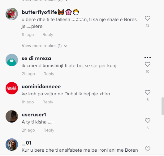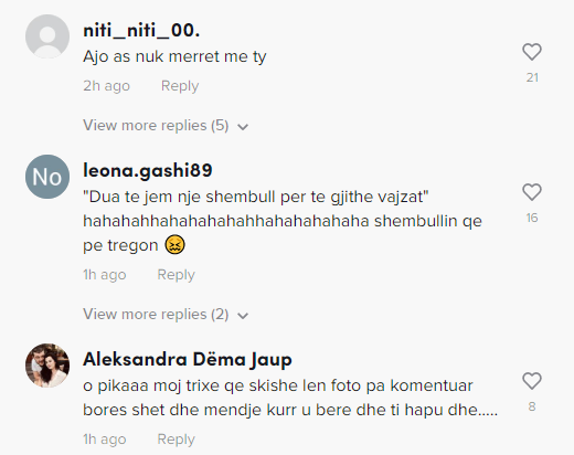Të tjerë shkruajnë se ajo po sillet në mënyrë të papërshtatshme dhe më pas flet për bullizmin: “Fillo qaj pak bëje te prekurin e bullizuara HAHAHA”/ “Kjo është ajo që bullizohet??????”