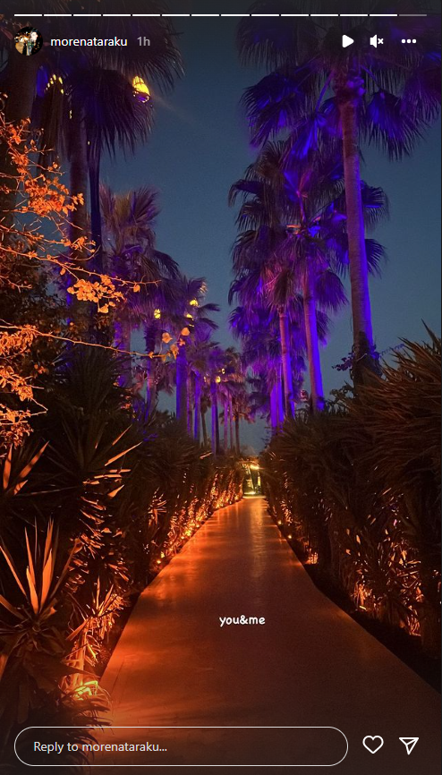 Ajo ka postuar një foto në llogarinë e saj në Instagram ku shihet një rrugë shumë romantike e mbuluar me drita ku krahas Morena shkruan: “Unë dhe Ti”
