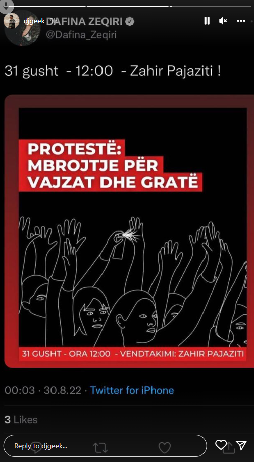 Në raportin paraprak të Policisë, është bërë e ditur se viktima është dërguar në strehimore dhe organet shtetërore po merren me trajtimin e saj. Ditën e nesërme është paralajmëruar edhe një protestë në sheshin “Zahir Pajaziti” në Prishtinë.