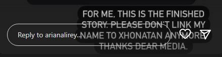 “Për mua kjo është histori e përfunduar. Ju lutem mos e lidhni më emrin me Xhonatanin. Faleminderit e dashur”, shkruan ajo në Instastory.