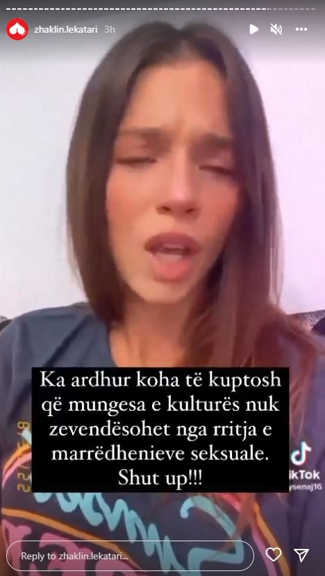 Pasi videoja u bë virale në rrjetet sociale, blogerja Zhaklin Lekatari ka bërë një reagim të ashpër në profilin e saj në Instagram duke ripublikuar videon e Shqipe Hysenajt.
