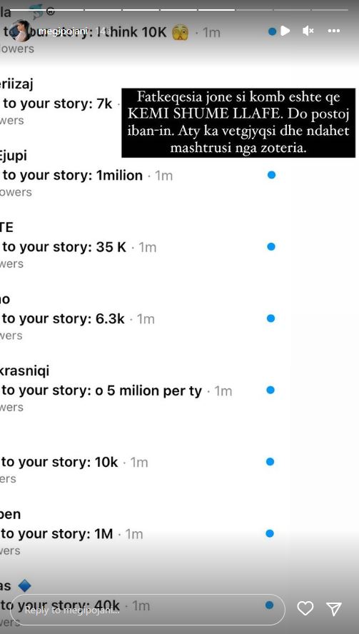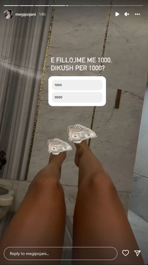 Së fundmi Megi ka postuar një foto në të cilën kishte treguar këmbët, ku ishte shprehur se nuk ofronte imazhe të plota të këmbëve të saj pa para.