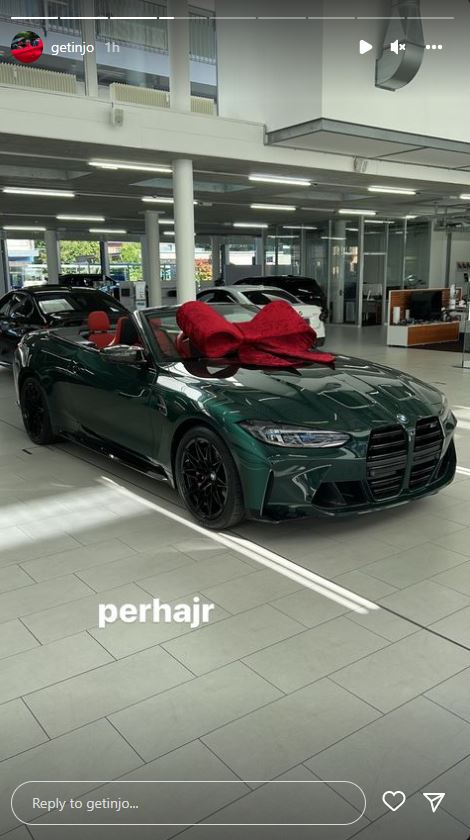 Getinjo ka investuar goxha në makinën e tij të re të markës BMW, ku nuk ka ngurrua ta ndajë me ndjekësit e tij.