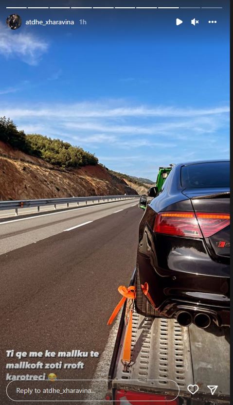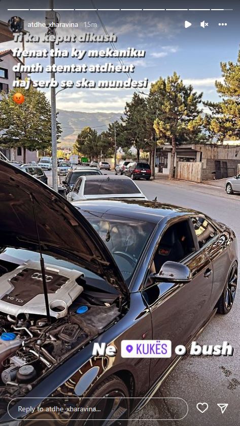 Në fund, Atdheu ka ndarë një foto të makinës së tij, teksa shkruan se i është thënë nga mekaniku që problem në automjetin e tij është shkaktuar nga dikush që “i ka këputur frenat.”