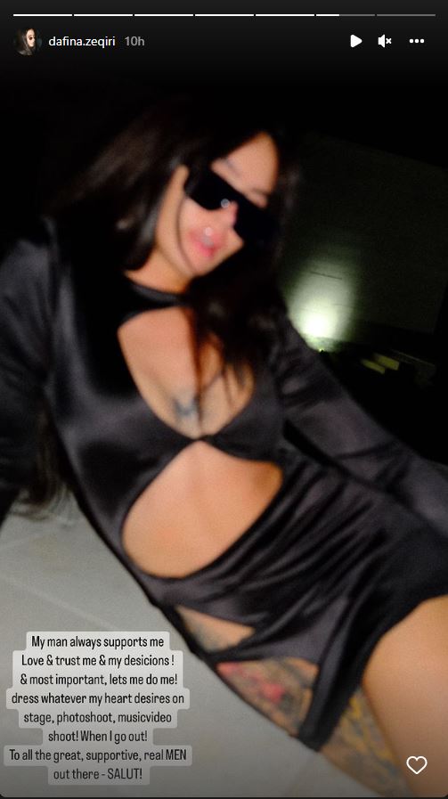 “Burri im gjithmonë më mbështet. Më do dhe i beson vendimeve të mija. Dhe më e rëndësishmja më lejon të jem “unë”. Mundem të vesh çfarë zemra ime dëshiron, në skenë, fotoshoot-e, videoklipet muzikor, apo edhe kur dal jashtë.”-shkroi ajo bashkangjitur me foton.