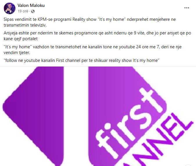 Lajmin e ka bërë me dije vetë ponari i “First Channel” Valon Maloku, me një postim në Facebook.