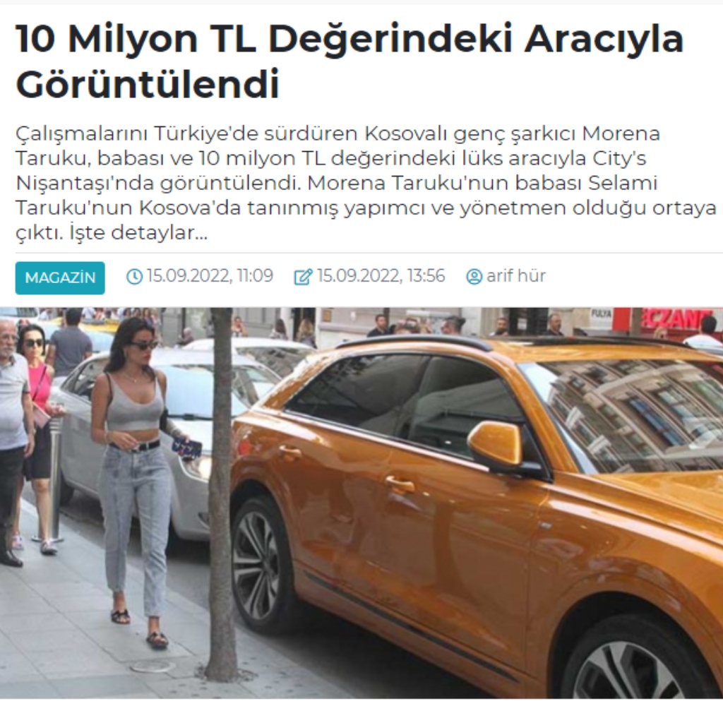 Së fundmi “Snob Magazin” i ka dedikuar një shkrim, Morenës duke publikuar disa foto të realizuara në qytetin Nişantaşı të Turqisë. Në foto duket këngëtarja dhe babai i saj duke arritur tek makina e tyre luksoze në ngjyrë portokalli.
