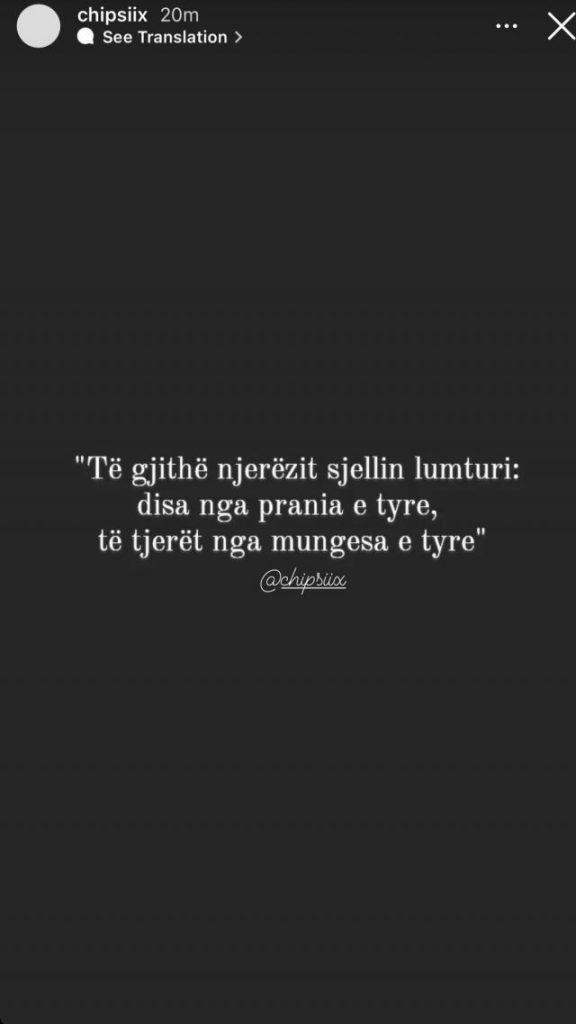 “Të gjithë njerëzit sjellin lumturi, disa nga prania e tyre, të tjerët nga mungesa e tyre”. Mesa duket këngëtari po përpiqet t’i thotë ish partneres se është më mirë pa të.