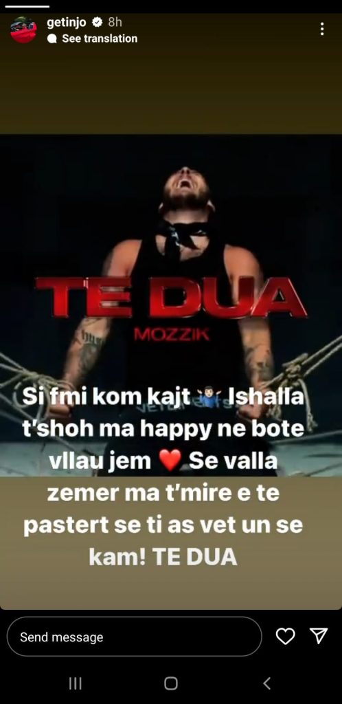 Getinjo e ka mbështetur publikisht në rrjetet sociale Mozzik duke shkruar se kjo këngë e ka bërë për të qarë. Në një postim në rrjetet sociale, ai shkruan: “Si fëmijë kam qarë. Inshallah të shoh më të lumturin në botë, vëllai im. Se zemër më të mirë dhe të pastër se ti as unë vetë s’e kam. Të dua!”