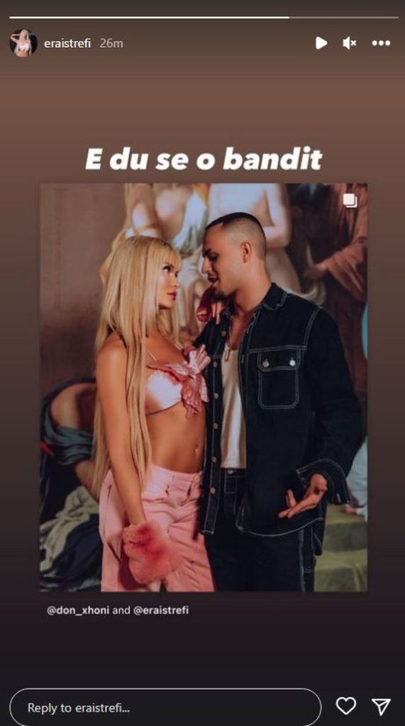 Teksa ka publikuar një foto krahas reperit, këngëtarja shkruan: E dua se është bandit.