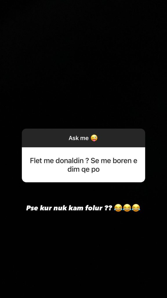 Këngëtari ka realizuar një intervistë virtuale me ndjekësit në Instagram ku mes të tjerash dikush e ka pyetur: “Flet me Donaldin? Se me Borën e dimë se po.”