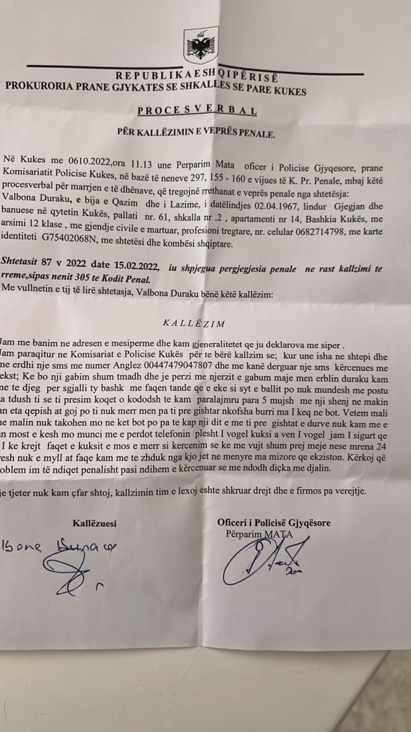 Sa e lirë dhe e sigurtë është Shqipëria? Sipas burimeve personi i kërcënuar është Erblin Duraku. Menjëherë pas kërcënimit me jetë e ëma e Erblin Durakut i është drejtuar institucioneve dhe ka bërë denoncimin. Ajo deklaron që ka mar një sms nga një numër me prefiks anglez ku shkruan ndër të tjera që nese nuk e mbyll faqen do të vuaj në mënyrën më mizore.Ajo shprehet që ndihet e frikësuar tashmë nëse djalit të tijë mund ti ndodhë diçka e keqe.