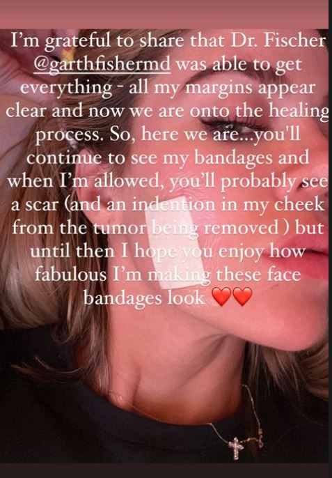 Ylli televiziv u takua me një dermatolog i cili i ekzamnoi fytyrën e saj dhe më pas ajo bëri dy biopsi që rezultuan se kishte nevojë për një operacion të menjëhershëm për të hequr një tumor nga fytyra e saj. Tashme gjithçka duket mirë tani dhe ajo po shërohet.