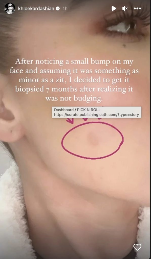 Khloe u tregua e sinqertë për çështjen shëndetësore të martën në rrjetet sociale, duke thënë se ajo shkoi te mjeku për një biopsi pasi vuri re një gungë të vogël në fytyrën e saj që mbeti aty për 7 muaj.
