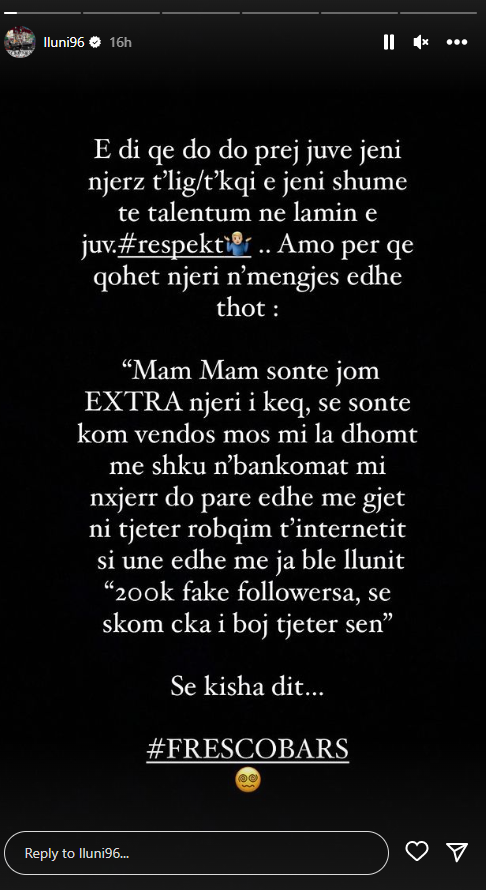 Këtë lajm artisti i labelit PINT e ka bërë të ditur përmes një “InstaStory”, ku shprehet tepër i nervozuar.