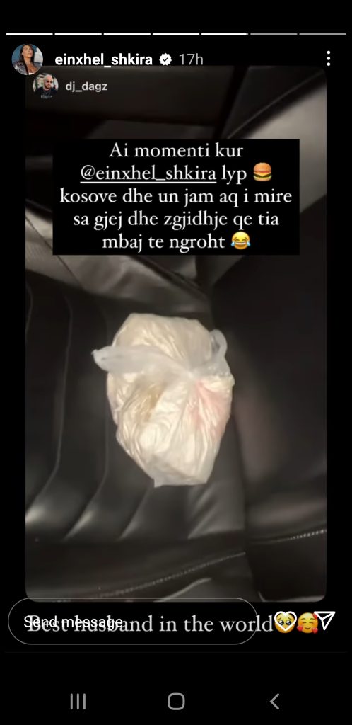 Përmes një Instastory Dj i njohur ka treguar se Einxhel i ka kërkuar një hamburger nga Kosova dhe sigurisht që Dagz ia ka plotësuar kërkesën partneres së tij.