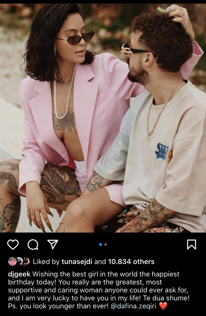 Në mes të urimeve të shumta vëmendjen e mori urimi i partnerit të saj DJ Geek.