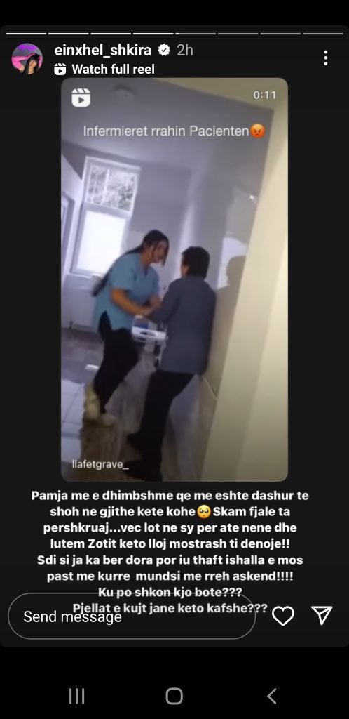 Siç shihet nga pamjet e siguruara, janë tre infermiere të cilat dhunojnë të moshuarën, ndërsa një tjetër, e paidentifikuar i filmon.