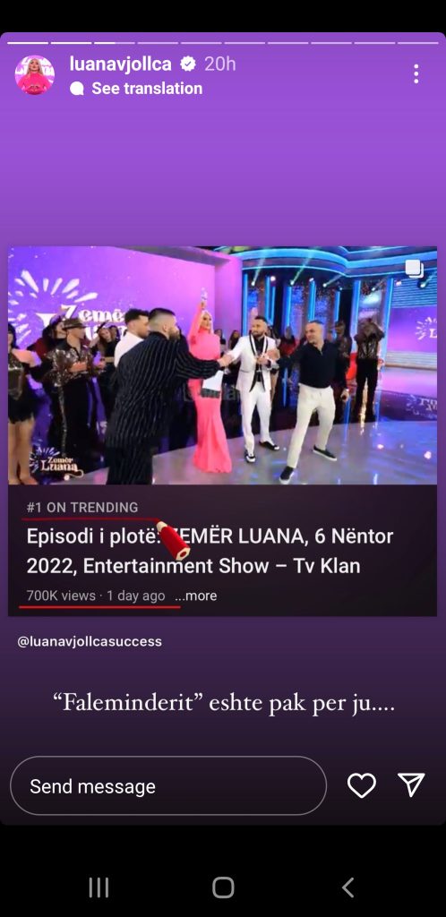 Alketa po e ndjen fort konkurrencën e Luana Vjollcës, e cila po thyen rekorde shikueshmerie dhe emisoni i saj po i afrohet 1 milion klikimeve të saj të para në TvKlan