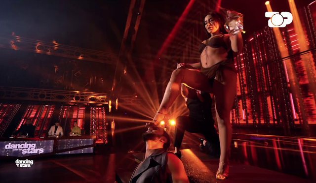 Megi Pojani risolli në “DWTS” kërcimin e aktores Salma Hayek nga filmi “From Dusk Till Dawn”, një ndër skenat më erotike. Moderatorja dhe Jurgeni kërcyen një Rumba ritmike dhe sensuale.