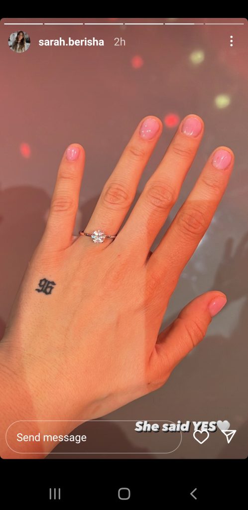 Sarah Berisha na bëri lëmsh mbrëmjen e djeshme, teksa ndau një foto ku duhej dora e saj me një unazë në gishtin e fejesës. Jo vetëm kaq! “Ajo tha po,”-shkruante Berisha krahas imazhit.