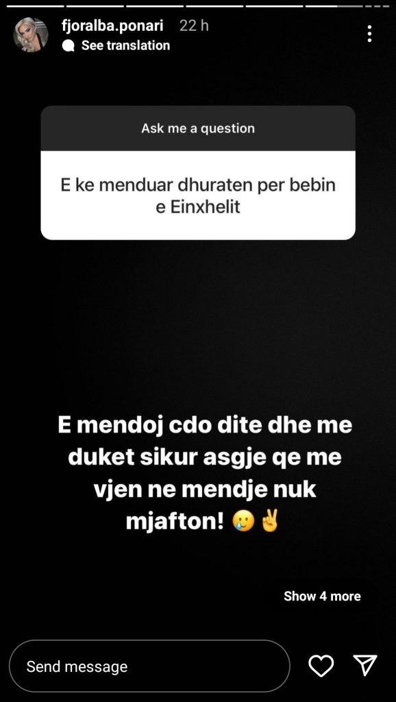 Së fundmi, Fjoralba ka zhvilluar një intervistë me ndjekësit në Instagram, ku njeri prej tyre e ka pyetur se çfarë dhurate ka menduar për djalin që po pret mikesha e saj..“E mendoj çdo ditë dhe më duket sikur asgjë që më vjen në mendje nuk mjafton”, është shprehur ajo duke treguar se është e pavendosur.