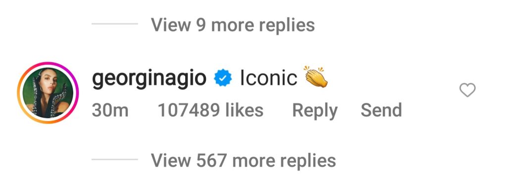 Ndërkohë, në postimin e Cristianos, ka reaguar edhe Georgina e quan këtë foton Ikonike.