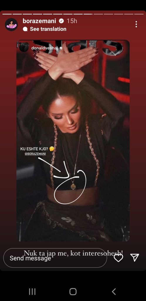 Donaldi ka postuar një foto të Borës me varësen e tij në qafë, krahas së cilës shkruan: “Ku është kjo?”
